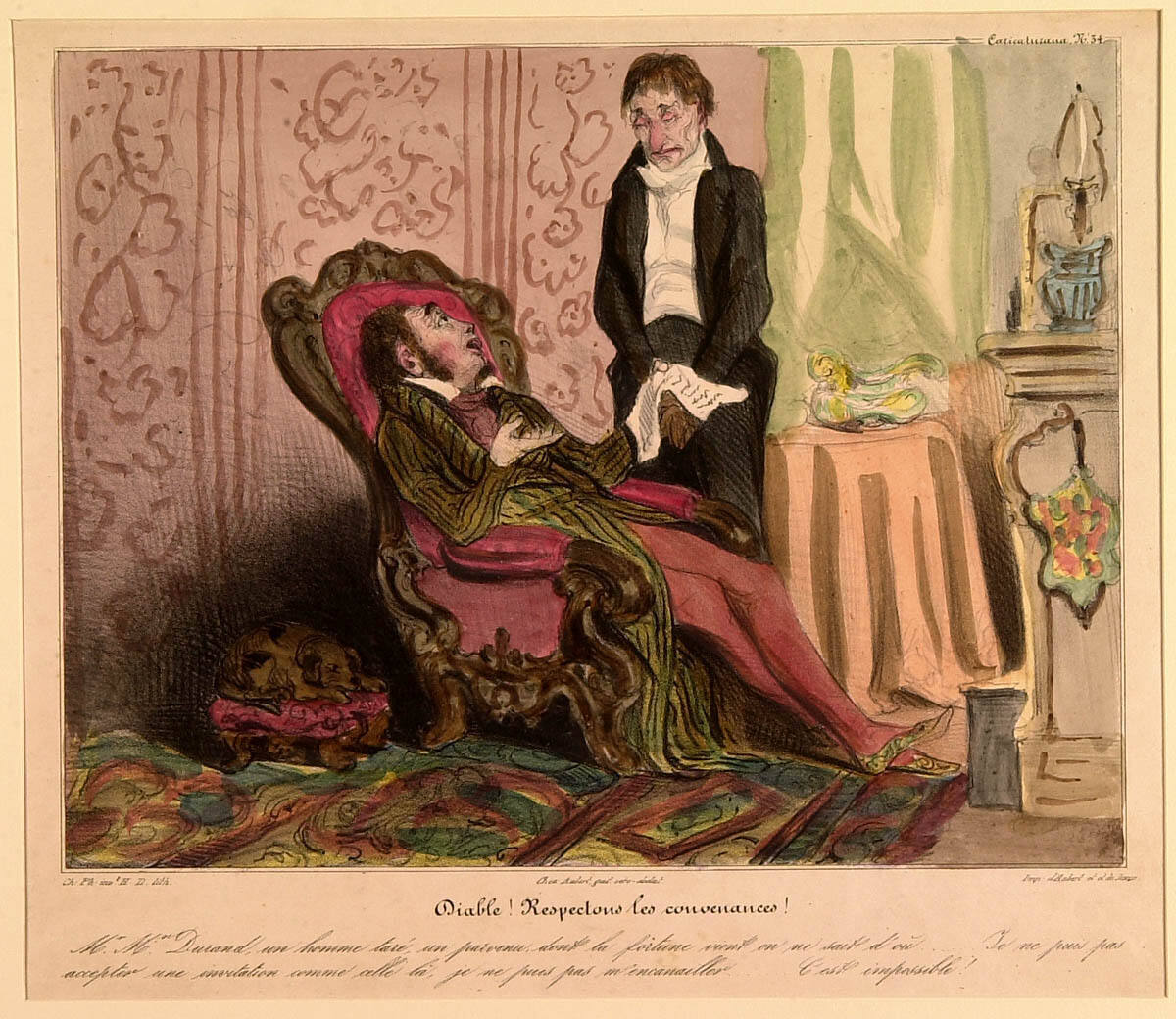 George L. McKenna, Prints, 1460-1995 (Kansas City, MO: Nelson-Atkins Museum of Art, 1996), 295-96, as Caricaturana (Les Cent Robert Macaire): Wretch, Let's Respect the Customs!.