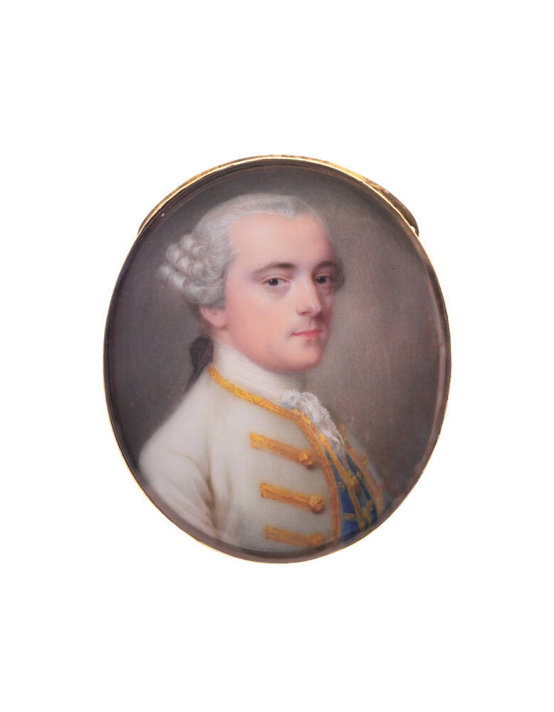 DescriptionPortrait miniature of a man with powdered hair wearing a white coat before a gray-brown background.Exhibition History