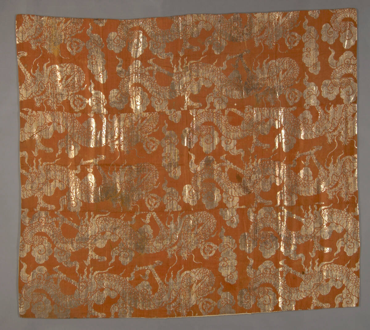 MediumOrange ground silk brocade with paper-covered silver leaf threads