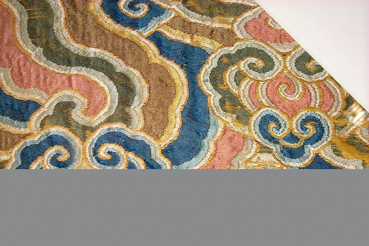 DescriptionFragment from a Lama coat. Yellow satin brocaded in polychrome. Design of waves, foam, and clouds in ju-i sceptre form.