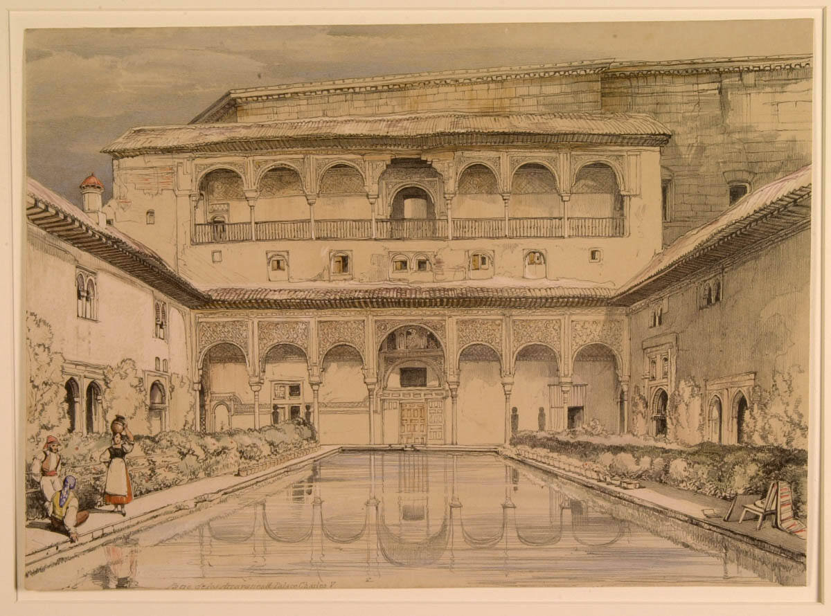 George L. McKenna, Prints, 1460-1995 (Kansas City, MO: Nelson-Atkins Museum of Art, 1996), 286, as Sketches and Drawings of the Alhambra, made during a residence in Granada, 1833-1834: Patio de los Arravanes and Palace Charles V.