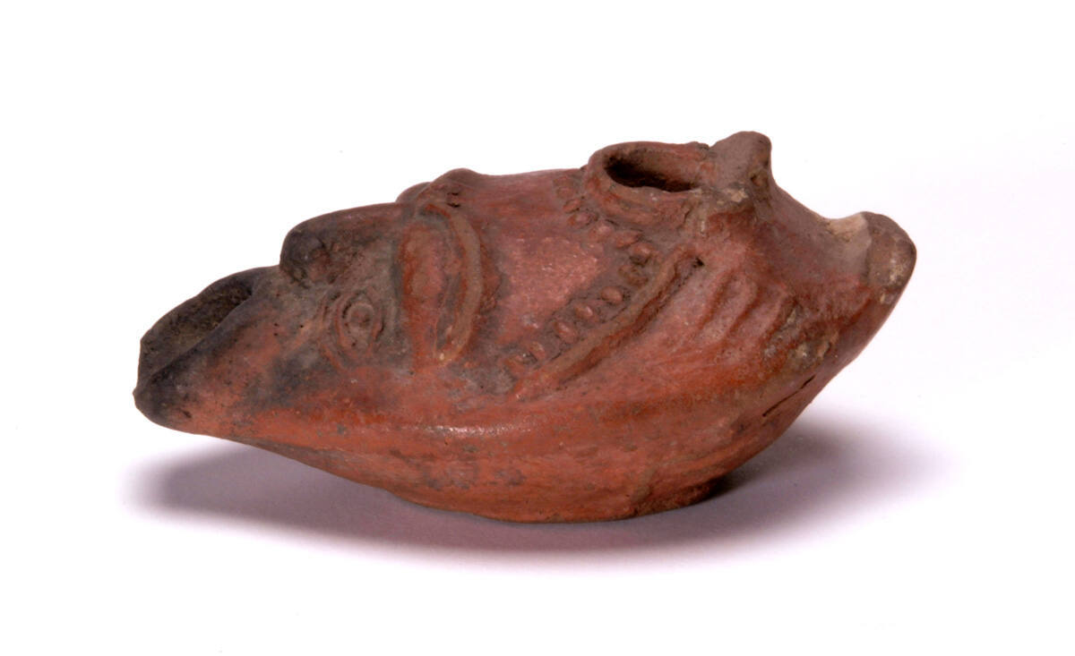 [1] The Nelson-Atkins and the Pacific School of Religion co-sponsored an archaeological expedition at Tell en-Nasbeh, northwest of Jerusalem, in 1932. The expedition was led by Dr. William Frederic Badé. The partage agreement between the institutions specified that if the artistic quality of the found objects was not satisfactory to the Nelson-Atkins, the Pacific School of Religion would transfer objects from its own collection to the Nelson-Atkins to supplement the more recent finds. This object is one of a group seven lamps transferred from the Pacific School of Religion to the Nelson-Atkins as a result of this agreement. William Frederic Badè wrote in a letter to J. C. Nichols, Nelson-Atkins Trustee, July 1, 1933, NAMA Registration Files: “We have included, from our earlier acquisitions, a series of Hellenistic picture lamps from various sites in Lower Egypt. They represent the height of artistic lamp production during the period when Greek art and literature were at their height in Egypt, with Alexandria at the centre.” An inventory list in the NAMA Registration files identifies this piece as from Memphis, Egypt.