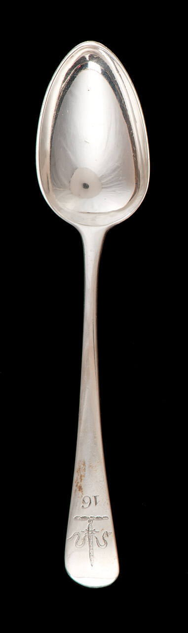 DescriptionOne of a set of 33 silver spoons (from an original set of 70) each individually engraved with a number from 1 to 34 with no. 30 missing. All also engraved with the crest of the City of Chester (snake and sword).