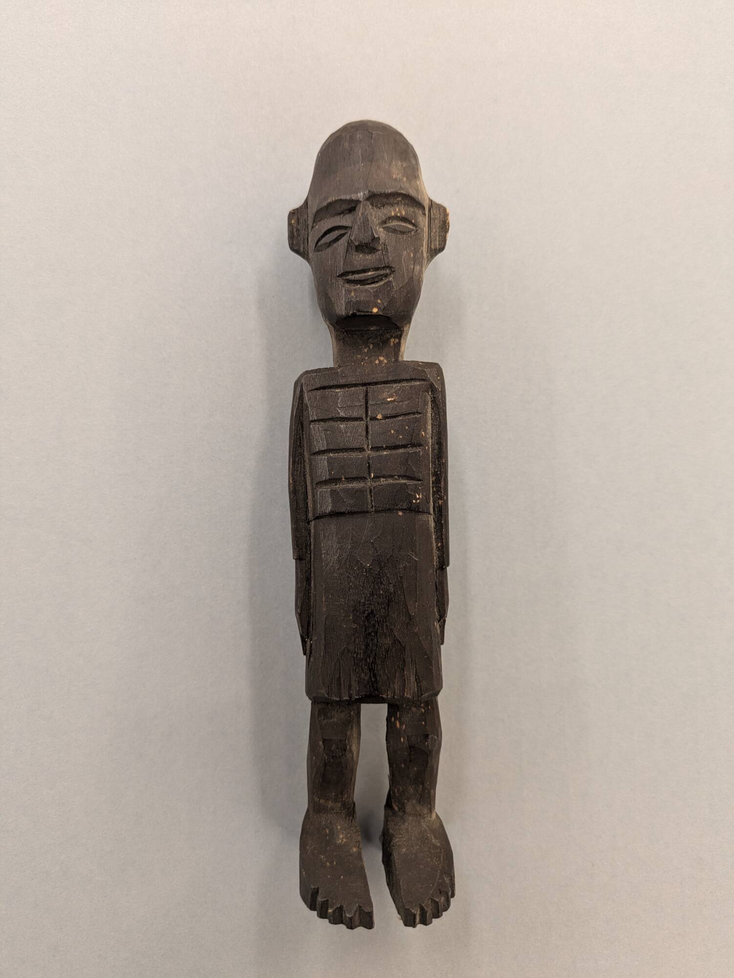DescriptionBlack wood carved figure with arms at sides.ProvenancePearle Scales Moore (1867-1934), Peoria, IL, by 1934 [1];