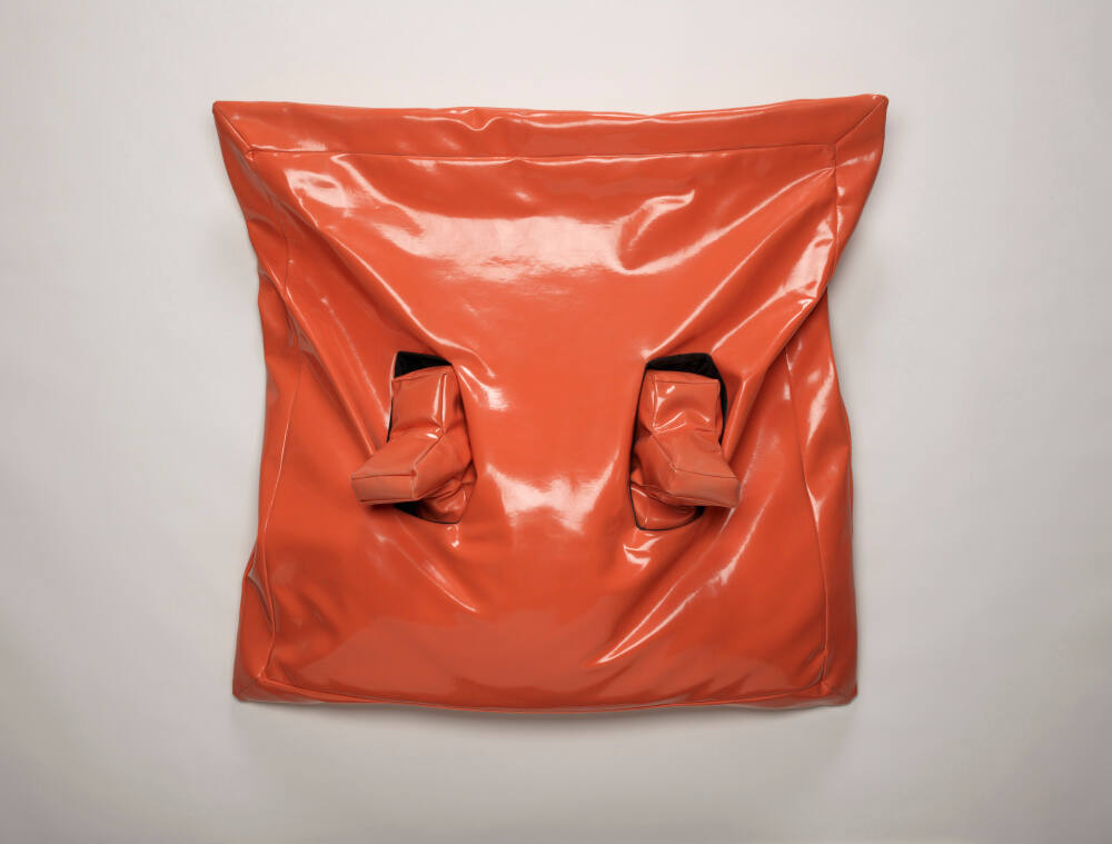 Oldenburg is renowned for transforming small, ordinary objects into monumental sculptures and for turning hard forms into soft sculptures made of various kinds of fabric. In 1964, he began a series of works inspired by home furnishings. Soft Switches, an example from this series, surprises us with its whimsical, hybrid appearance that evokes human physiognomy and personality.