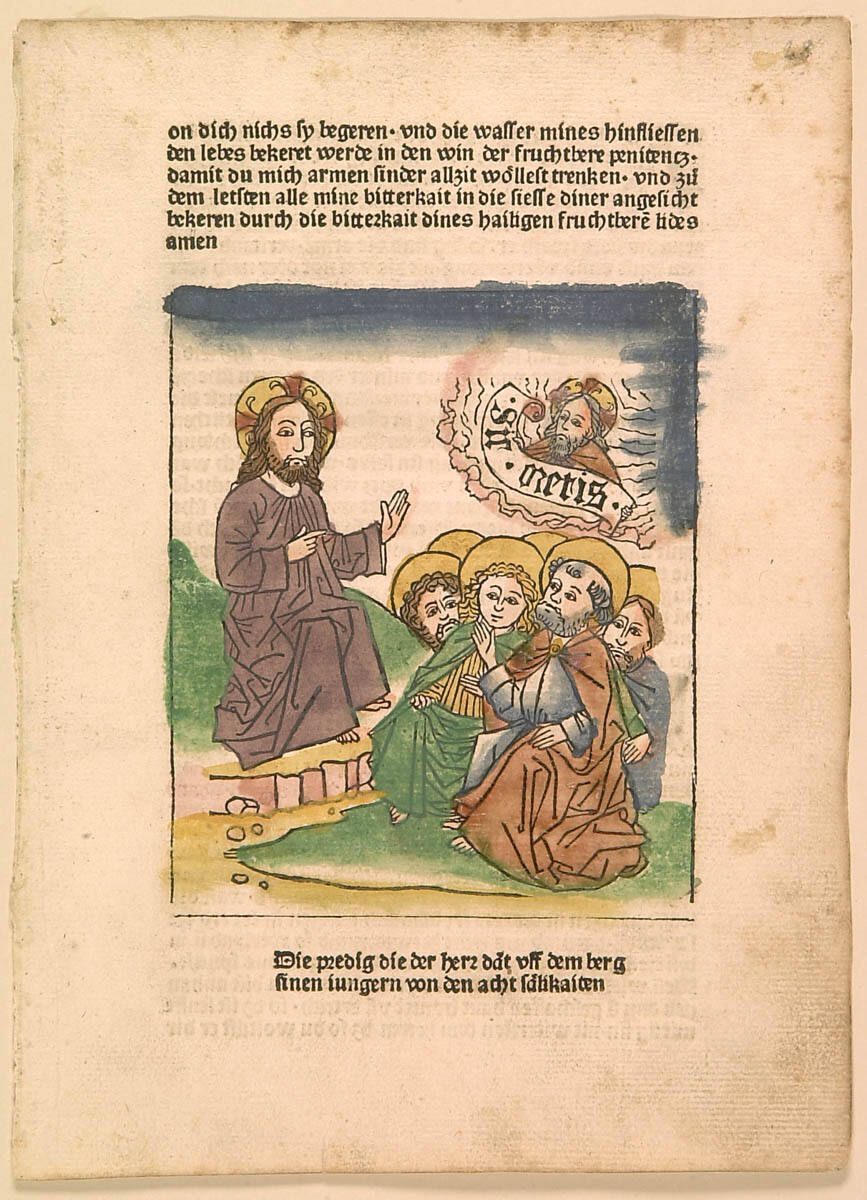 George L. McKenna, Prints, 1460-1995 (Kansas City, MO: Nelson-Atkins Museum of Art, 1996), 303, as Four prints from Geistliche Auslegung des Lebens Jesu Christi, Ulm: Christ Speaks to His Disciples.