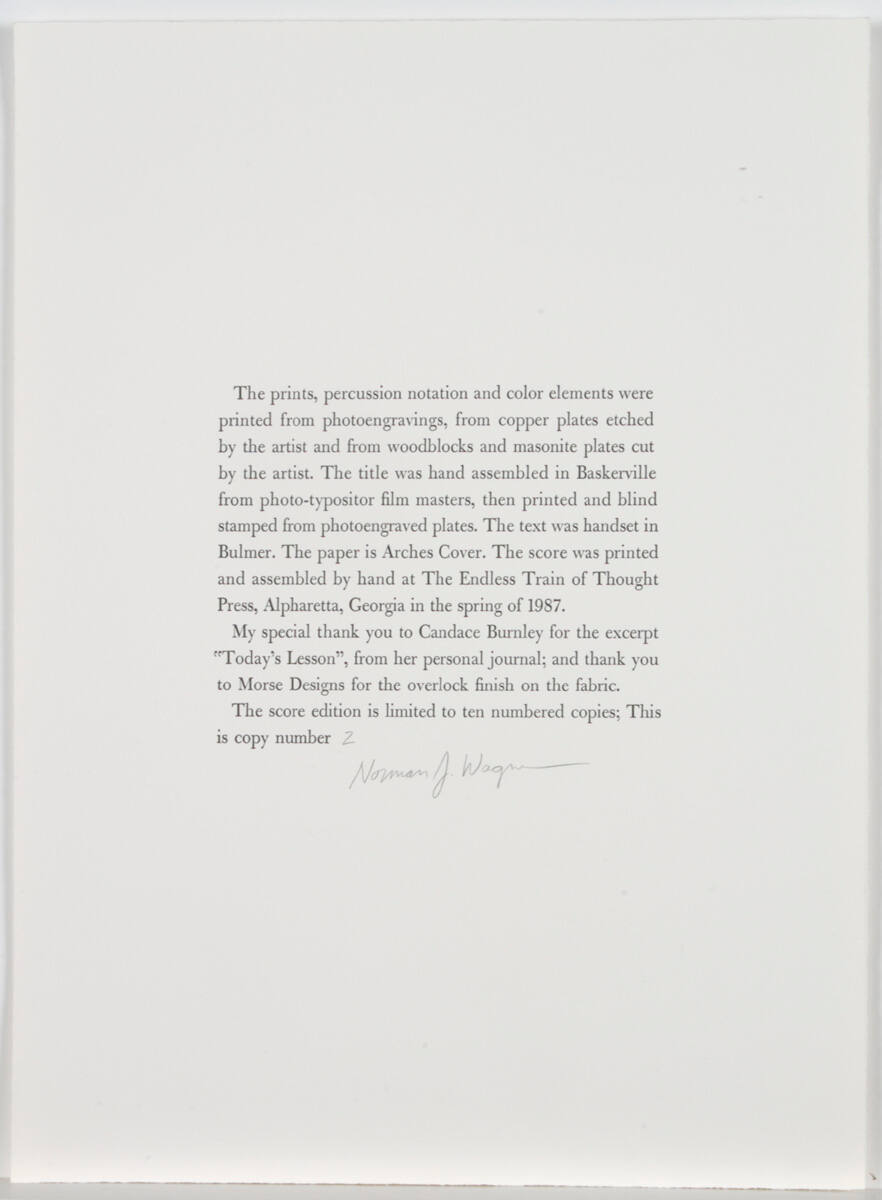 DescriptionColophon page - 3 paragraphs of text, numbered in pencil: "2"/10Copyright© Norman J. Wagner
