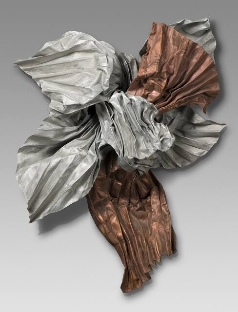 DescriptionBowlike construction of large, metallic ribbons with ridged surface pattern.Copyright© Lynda Benglis / Licensed by Artists Rights Society (ARS), New York