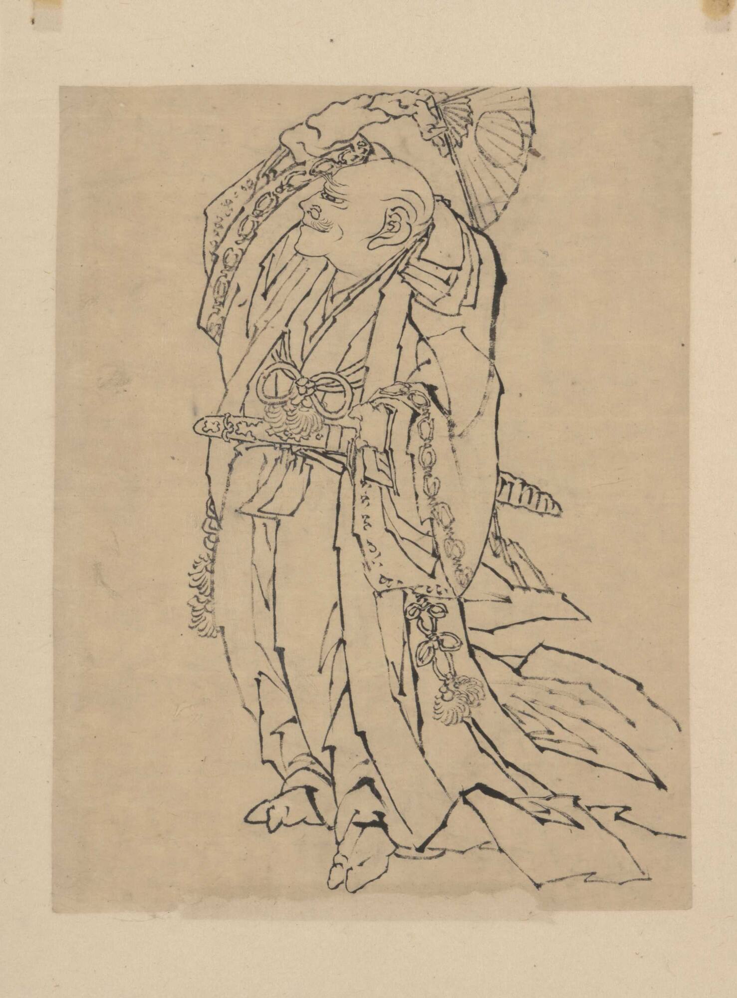 Figure of a Samurai, Holding a Fan above his Head