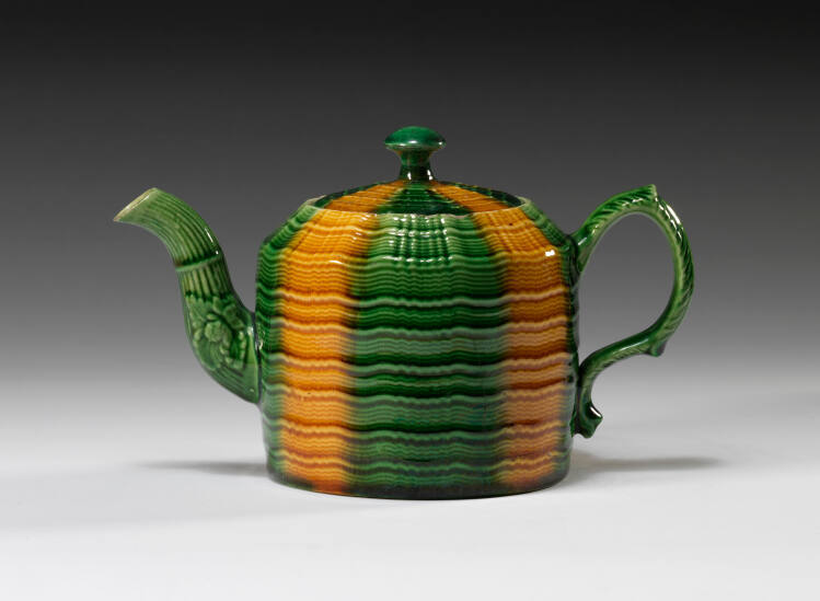 Gallery LabelThomas Whieldon (1719-1795) is credited with establishing the standards of materials, designs and craftsmanship that made both his business and Staffordshire the preeminent pottery and center of 18th-century English ceramics production. These standards were passed along to other successful potters he trained such as Josiah Spode, William Greatbatch and Aaron Wood. During his partnership with Josiah Wedgwood from 1754-59, they developed improved lead glazes for their refined earthenwares. Most characteristic of Whieldon's wares, and his many imitators, are the bright yellow, green and blue glazes seen on these tablewares, which comprised most of his business.