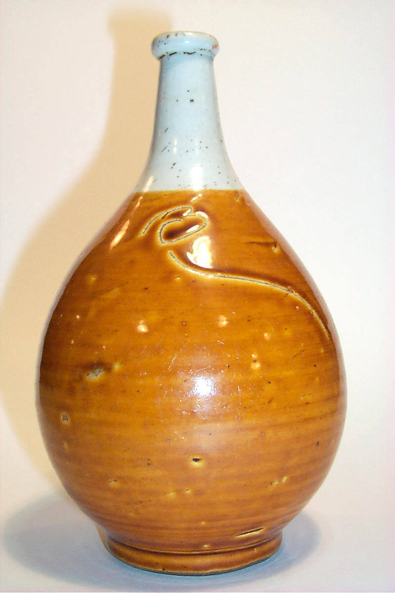 Sake Bottle with Incised Peony Design