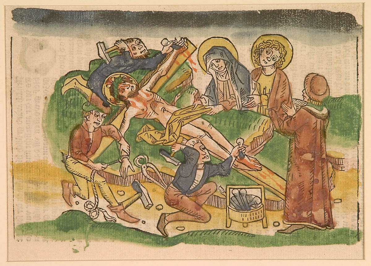 George L. McKenna, Prints, 1460-1995 (Kansas City, MO: Nelson-Atkins Museum of Art, 1996), 303, as Four prints from Geistliche Auslegung des Lebens Jesu Christi, Ulm: Christ Nailed to the Cross.