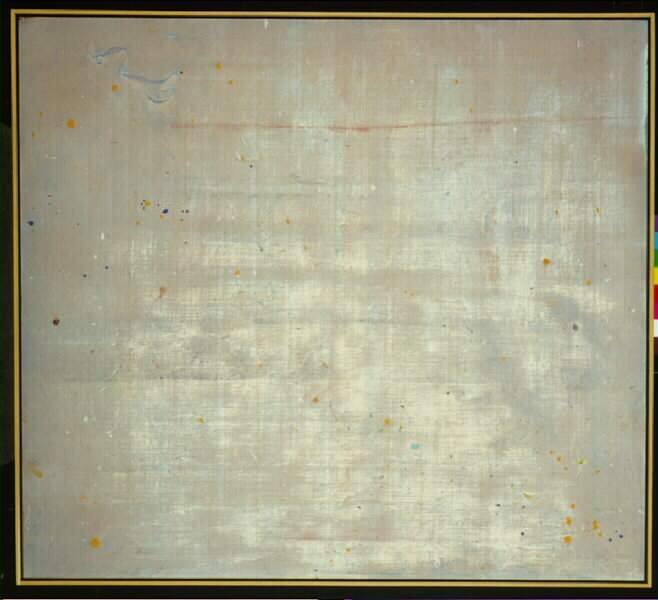 DescriptionNon-figural painting. blue and white washes as ground, on which are horizontal streaks of red and dark blue, and specks of red, dark blue, light blue, and orange.Copyright© Ronald J. Slowinski
