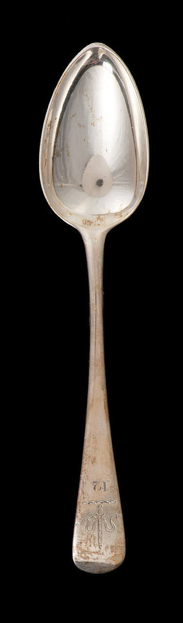DescriptionOne of a set of 33 silver spoons (from an original set of 70) each individually engraved with a number from 1 to 34 with no. 30 missing. All also engraved with the crest of the City of Chester (snake and sword).