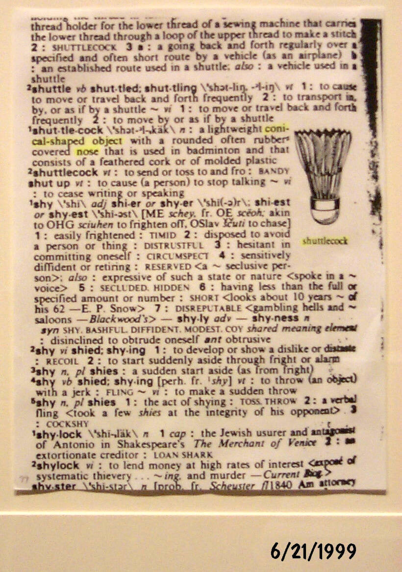 Dictionary Entry on Shuttlecock