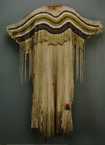 [2] Thea Page donated this dress to the planned Museum of the American Indian-Heye Foundation (founded 1916) upon her marriage to the institution’s founder, George Heye (1874-1957), in 1915. The Museum of the American Indian-Heye Foundation opened to the public in New York City in 1922. In 1989, the remaining collection was transferred to the Smithsonian Institution and became part of the National Museum of the American Indian.