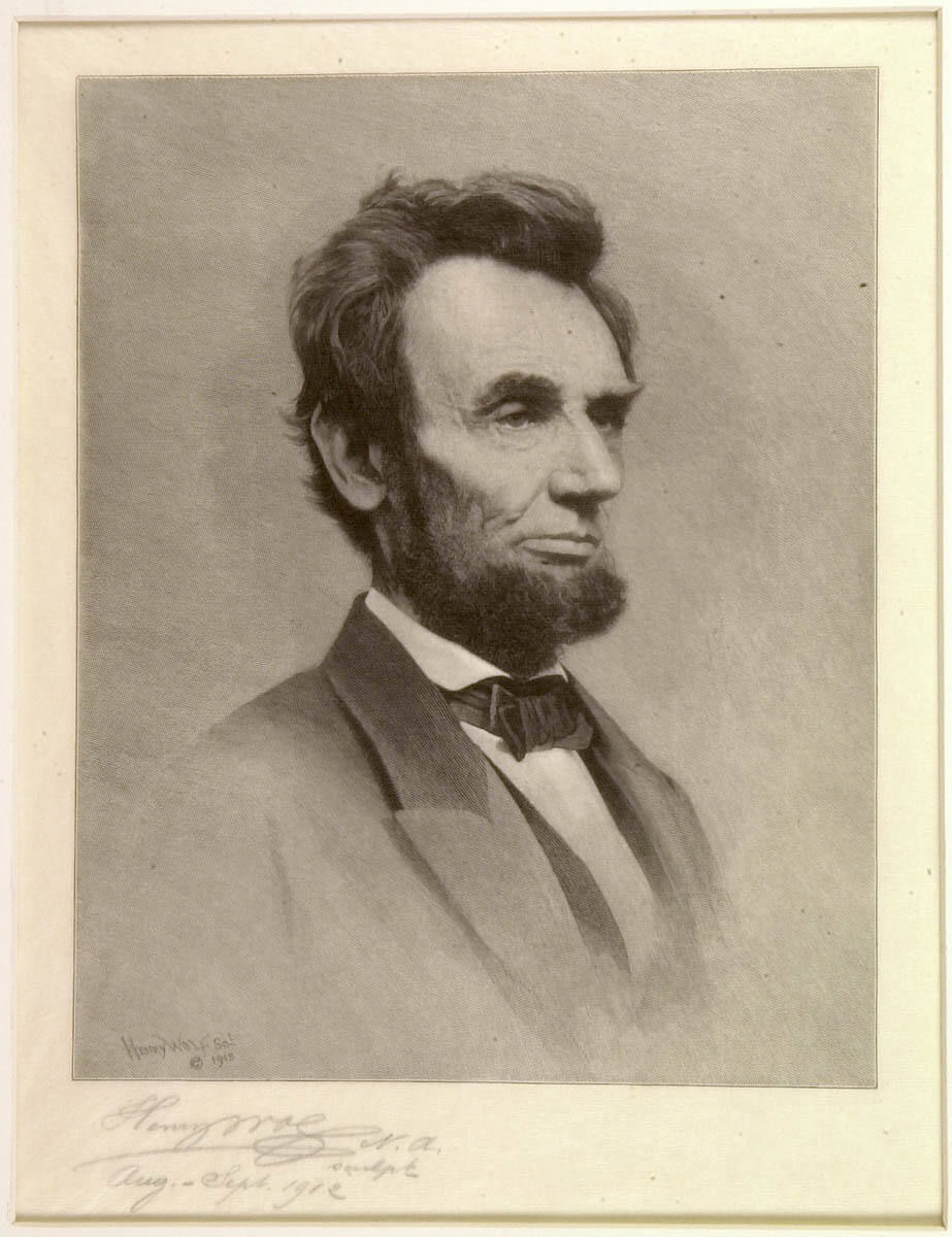 dignified wood engraving of Abraham Lincoln on Mathew Brady’s 1863 photograph