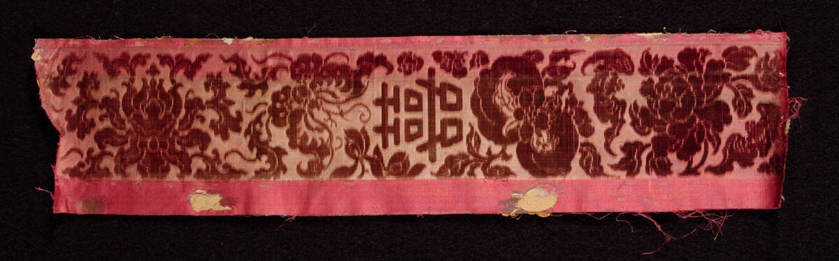 DescriptionA border with chrysanthemums and characters, brick-colored background, darker shade design.