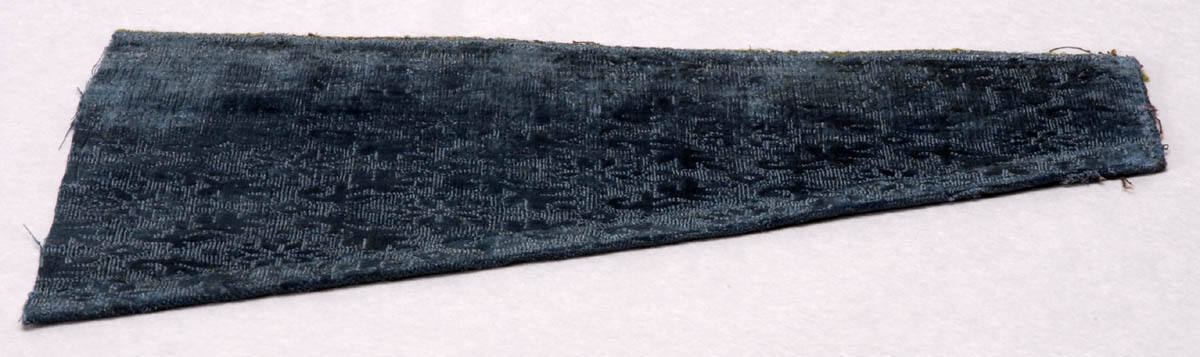 DescriptionGrey blue velvet with flower design overall.