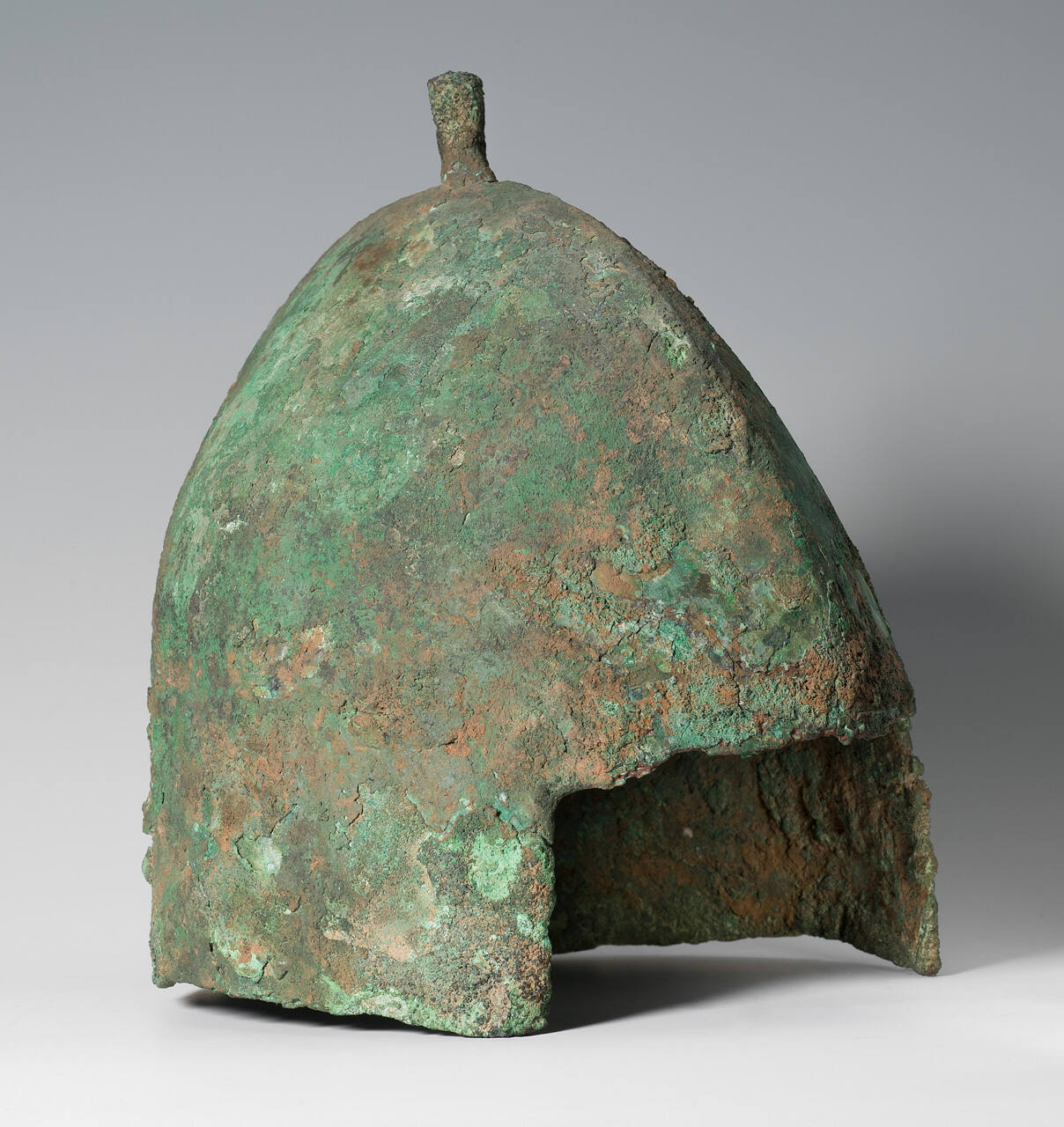 DescriptionOval dome shaped, with small broken spike on top; no decoration. Heavy green encrusted patina.ProvenanceWith Dr. Otto Burchard, Peiping (modern-day Beijing), China, by April 28, 1934;