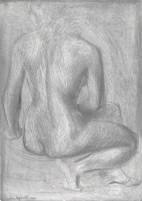 Gallery LabelBarbara Hepworth’s nude, seen from the back, with her head a mere sketch, is twisting and seems poised to stand and move. The figure is modeled in dark tones with white highlights, and feels very solid and weighty like a sculpture. Hepworth, who is renowned for her semi-figural and abstract sculptures in cast bronze and carved stone, focuses, here, on the woman’s strength rather than her sexuality.