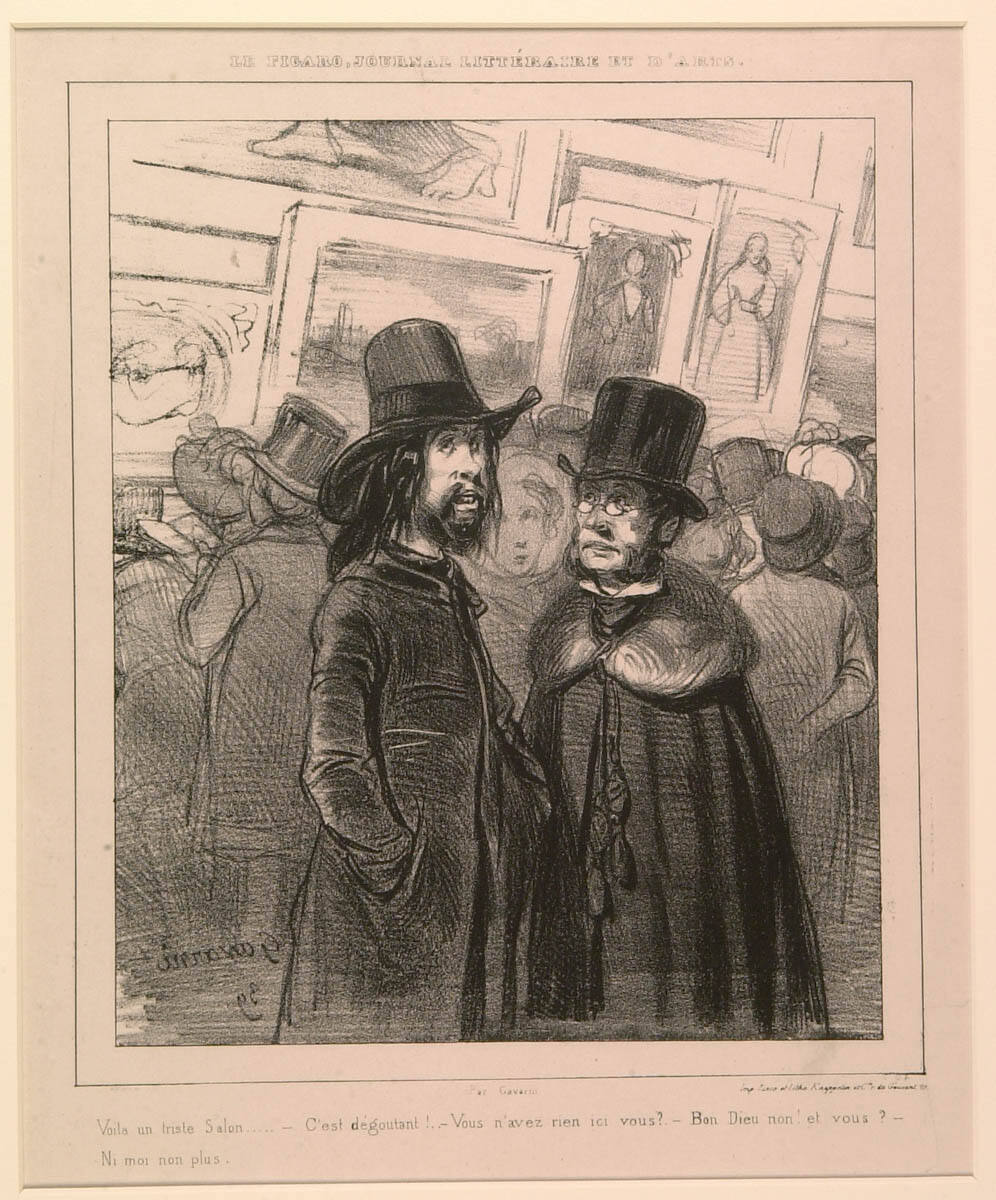 George L. McKenna, Prints, 1460-1995 (Kansas City, MO: Nelson-Atkins Museum of Art, 1996), 297, as Voilà un triste Salon…, from Le Salon, illustrated in Figaro, March 10, 1839.