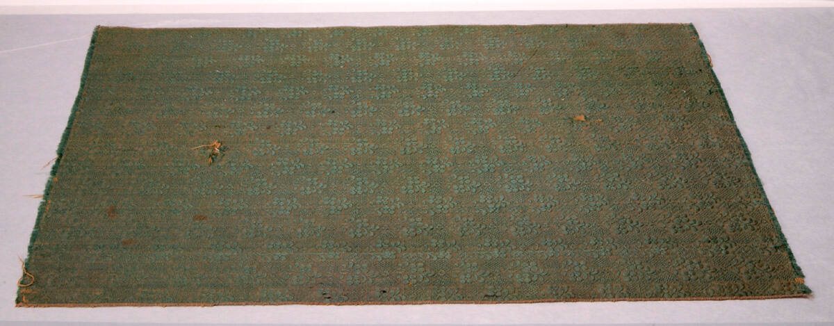 DescriptionAll over lozenge pattern with enclosing spary of flowers in green and natural linen.