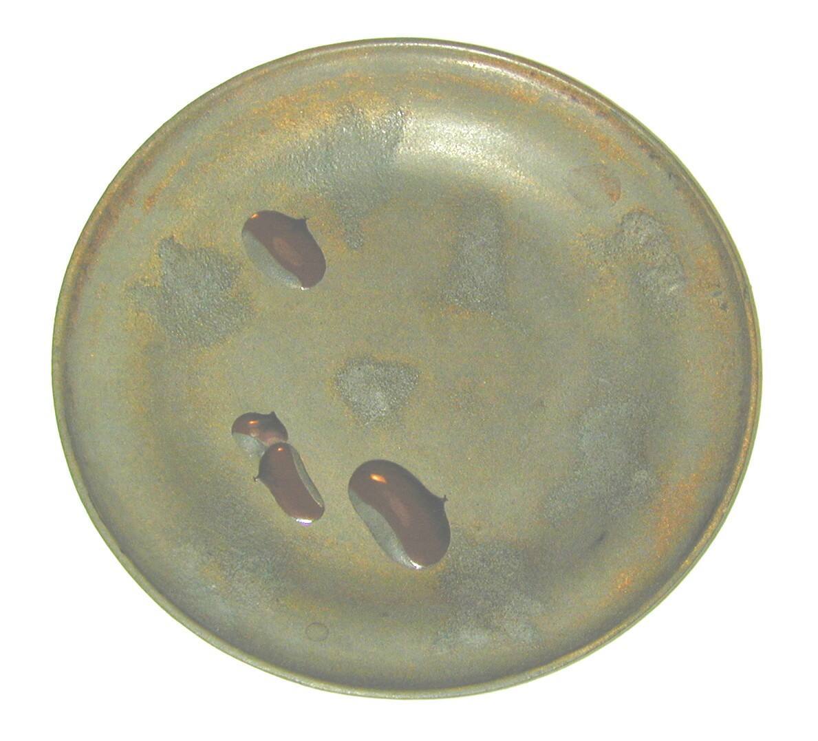 DescriptionSmall round plate with a mottled light brown textured ground, imitating old copper plates used by the Portuguese. Decorated with four randomly placed acorns of different sizes.