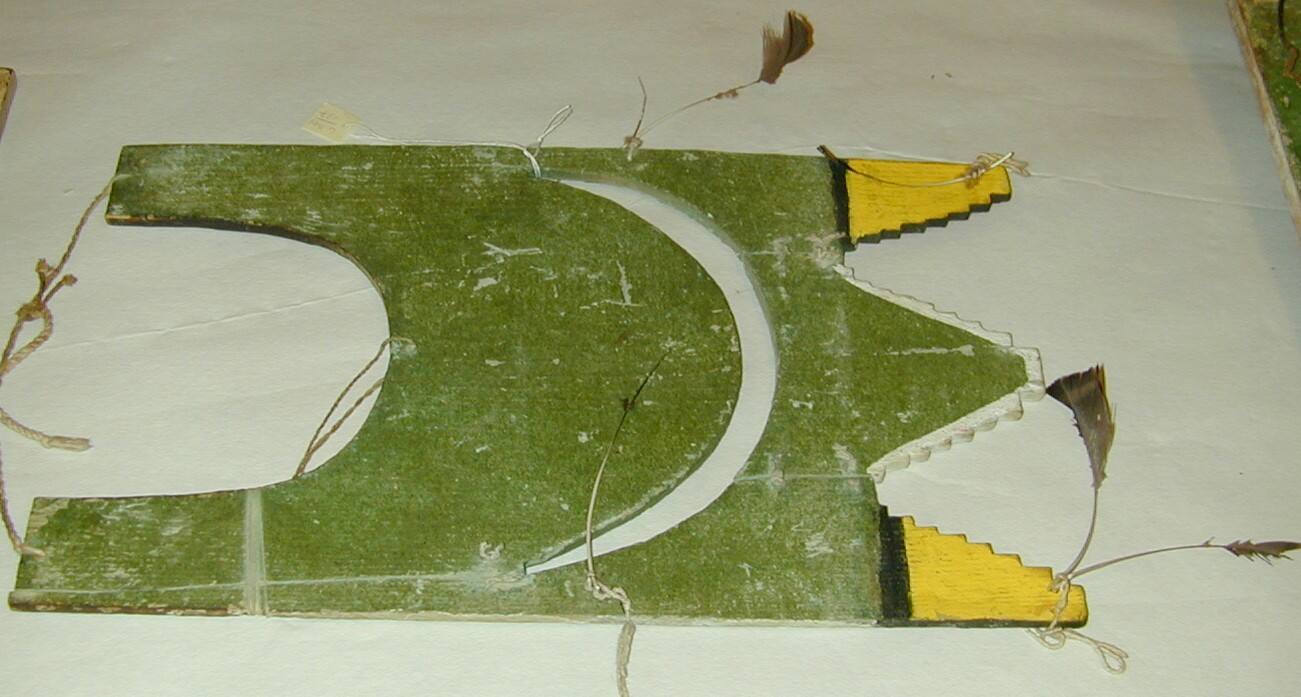 MediumWood, pigment, cotton string, and feathers