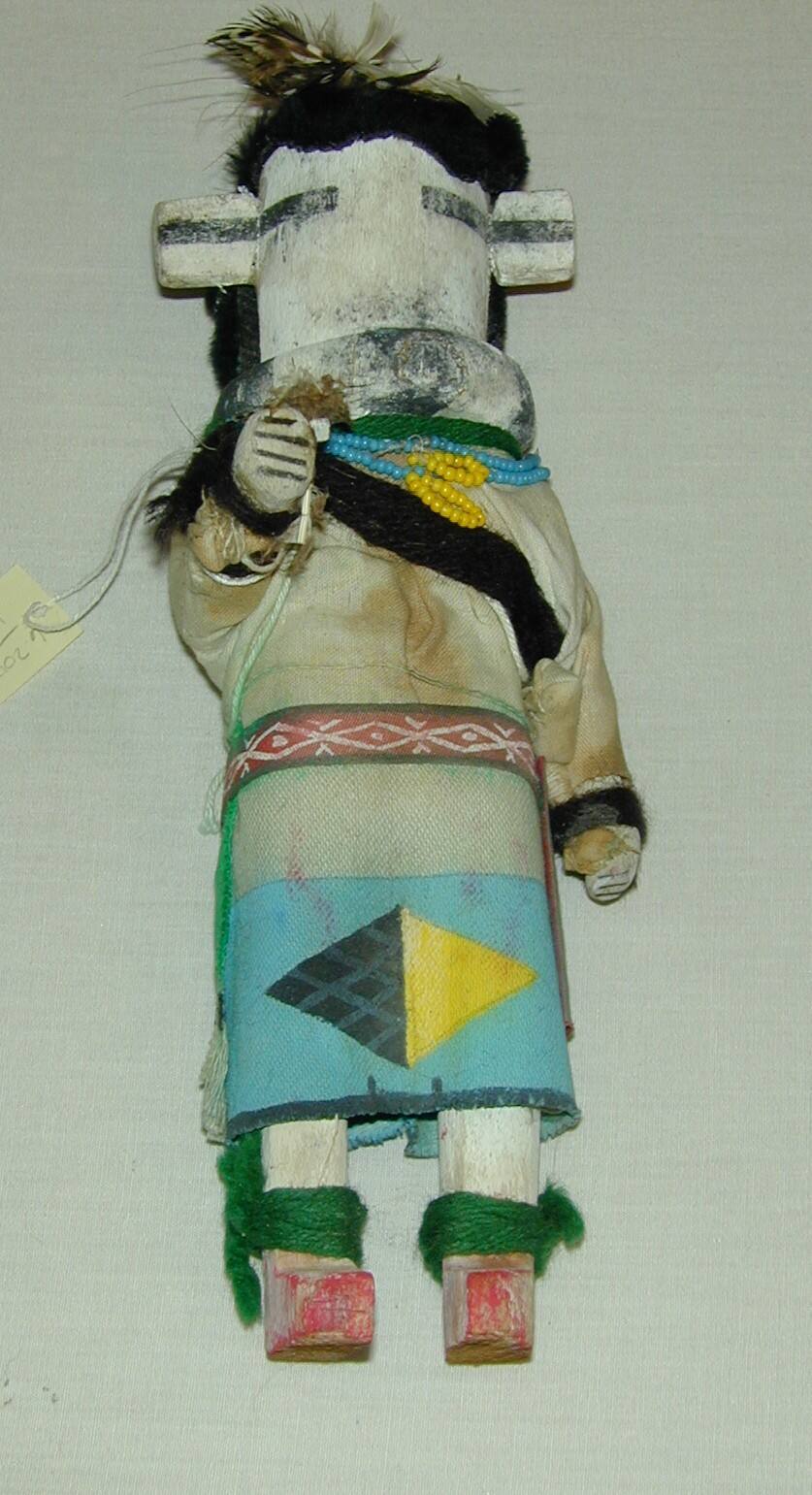 MediumWood, pigment, cotton cloth, wool yarn, glass beads, synthetic fur, cotton string, and feathers