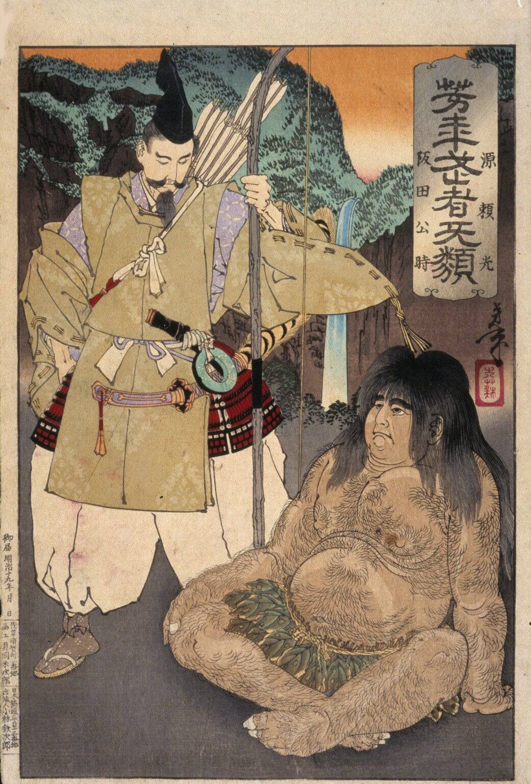 Minamoto no Raiko meets Sakata Kintoki on Ashigara Mountain