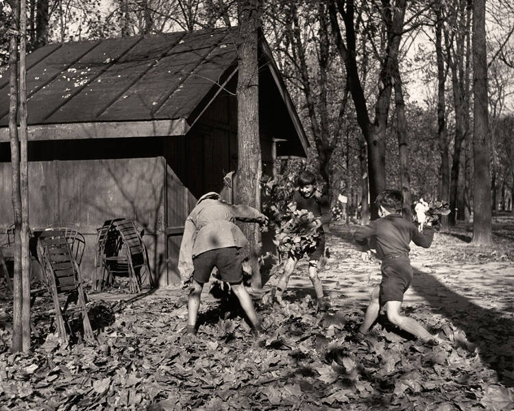 Untitled (children playing in leaves)