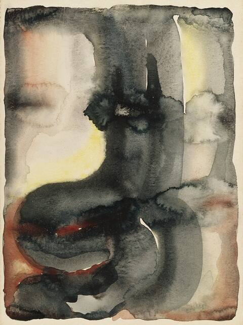 DescriptionThis small abstract watercolor features a variety of forms. The most prominent is a black organic shape that runs vertically from the top of the composition to the bottom. It is offset by a few brighter colors, including yellow and red on either side.Gallery LabelPainted in Canyon, Texas, early in Georgia O'Keeffe's legendary career, Portrait: W No. II represents her pioneering experiments in abstraction. Taking cues from various influences, including the philosophical writings by German artist Wassily Kandinsky, O'Keeffe painted this "portrait" broadly and intuitively in order to achieve a poetic evocation of her subject rather than a literal depiction. O'Keeffe's application of watercolor was particularly wet so that the halo effects of dried passages serve as organic forms in the composition. The artist revealed in personal correspondence that she had painted the unconventional portrait from an actual sitter, but she could not recall the man's name.
