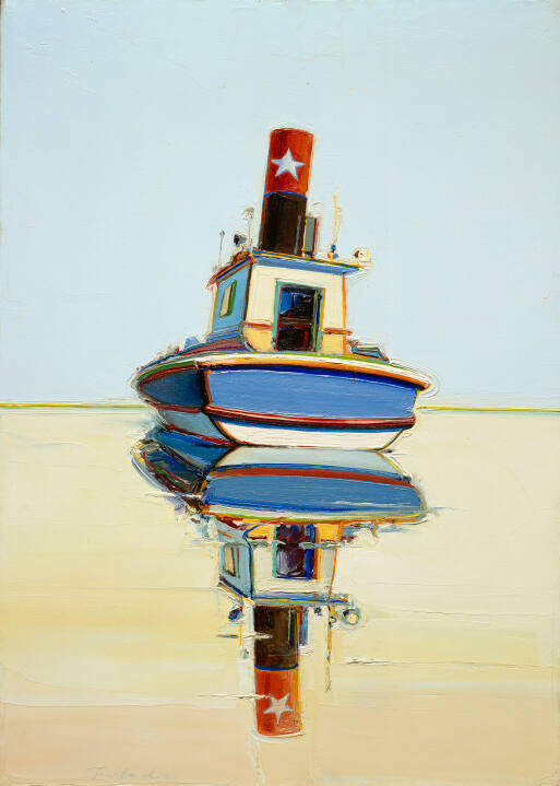Starboat (Tugboat and Riverboat) is painted with the same strong colors and thick impasto (thickly applied paint) that characterize most of Thiebaud's works. While his work has been associated with Pop art because of its focus on the everyday objects of popular culture, Thiebaud sees his art as part of a long tradition of realist art.