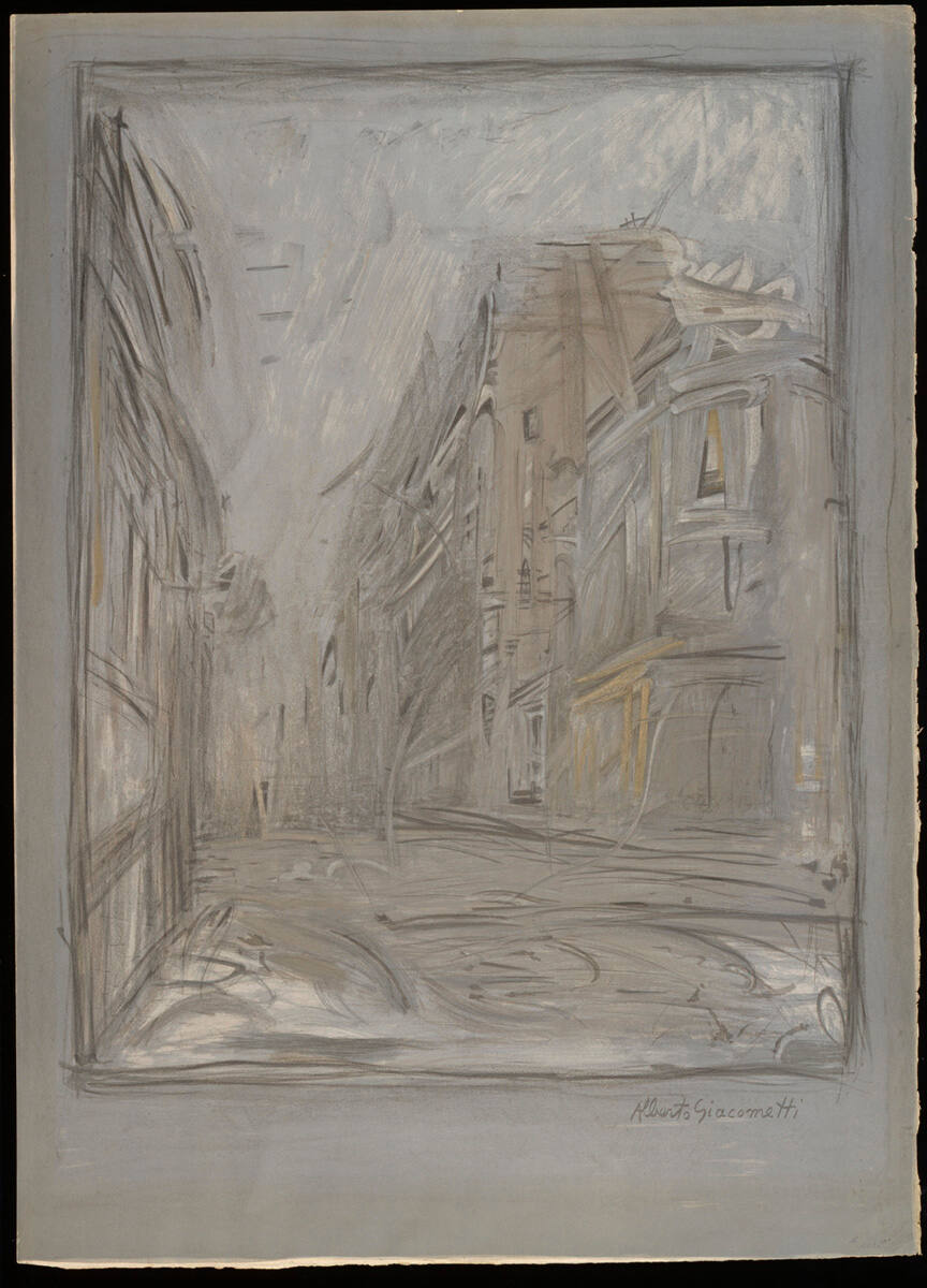 DescriptionThe print depicts a loosely drawn street scene in grey and brown tones. Tall buildings rise on the right and left side, and are divided by a road that seems to disappear into the distance.Copyright© Artists Rights Society (ARS), New York / ADAGP, Paris