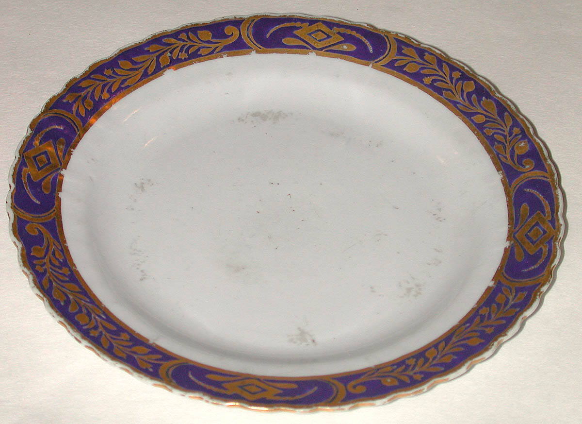 DescriptionWide blue and gold borders, alternating floral and lozenge design.