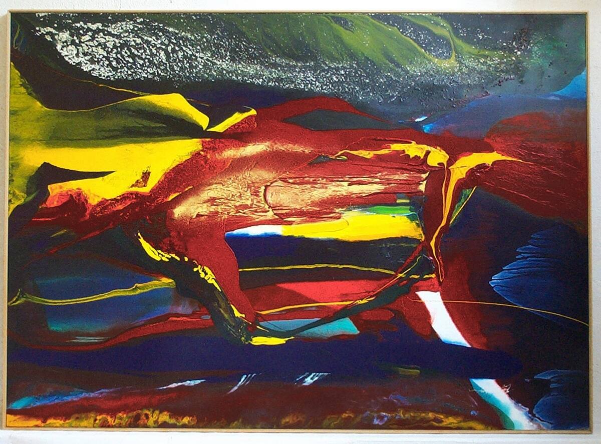 DescriptionThe painting is abstract. Large swaths fo the primary colors, red, blue, and yellow move horizontally across the canvas.Copyright© Paul Jenkins / Artists Rights Society (ARS), New York / ADAGP, Paris