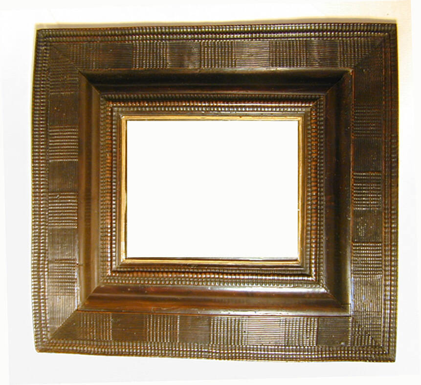 DescriptionBolection profile cabinet frame in ebonized pearwood with wave mouldings at sight and back, reed-&-ripple moulded freeze
