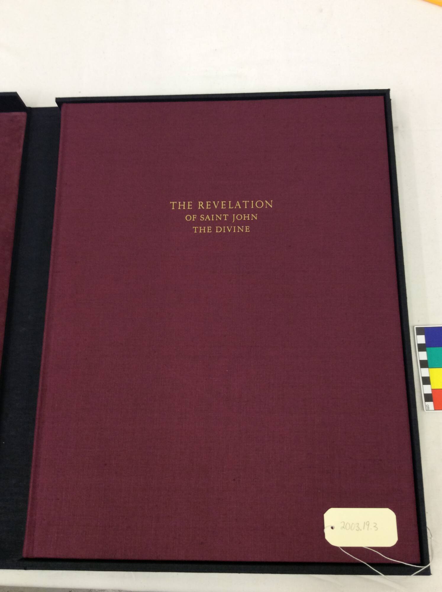 DescriptionFifteen relief engravings of figural subjects illustrating the Apocalyse, in a volume bound in burgundy linen and housed in a hinged box covered in black Italian cotton, inset with Nigerian goatskin bearing the title stamped in 22-karat gold.Copyright© Allan Rohan Crite Research Institute and Museum / Jackie Cox-Crite (President)