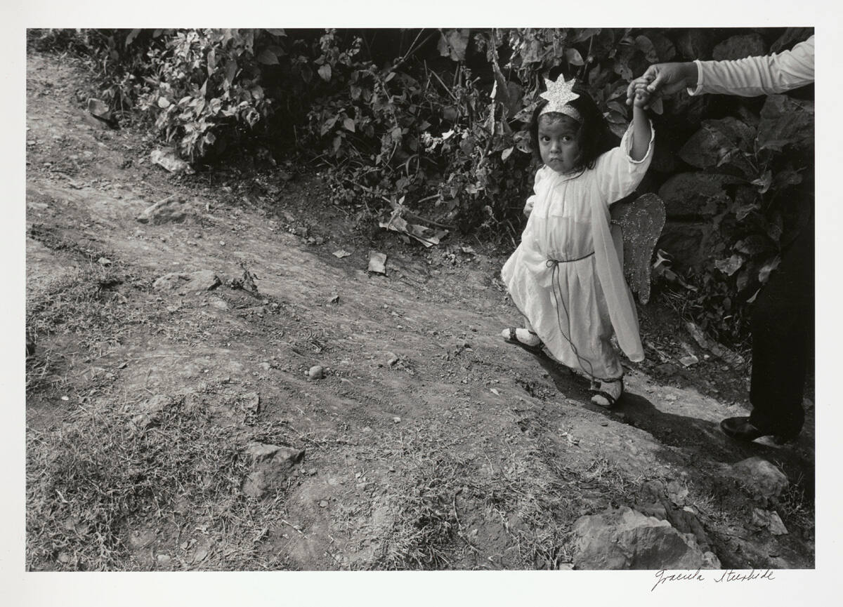 In this image of a young girl, Graciela Iturbide finds some personal connection to her own childhood. The girl, dressed to celebrate the feast day of San Miguel Arcangel, holds the hand of someone outside the frame. The exclusion of this presumably adult figure focuses attention on the child and her world.