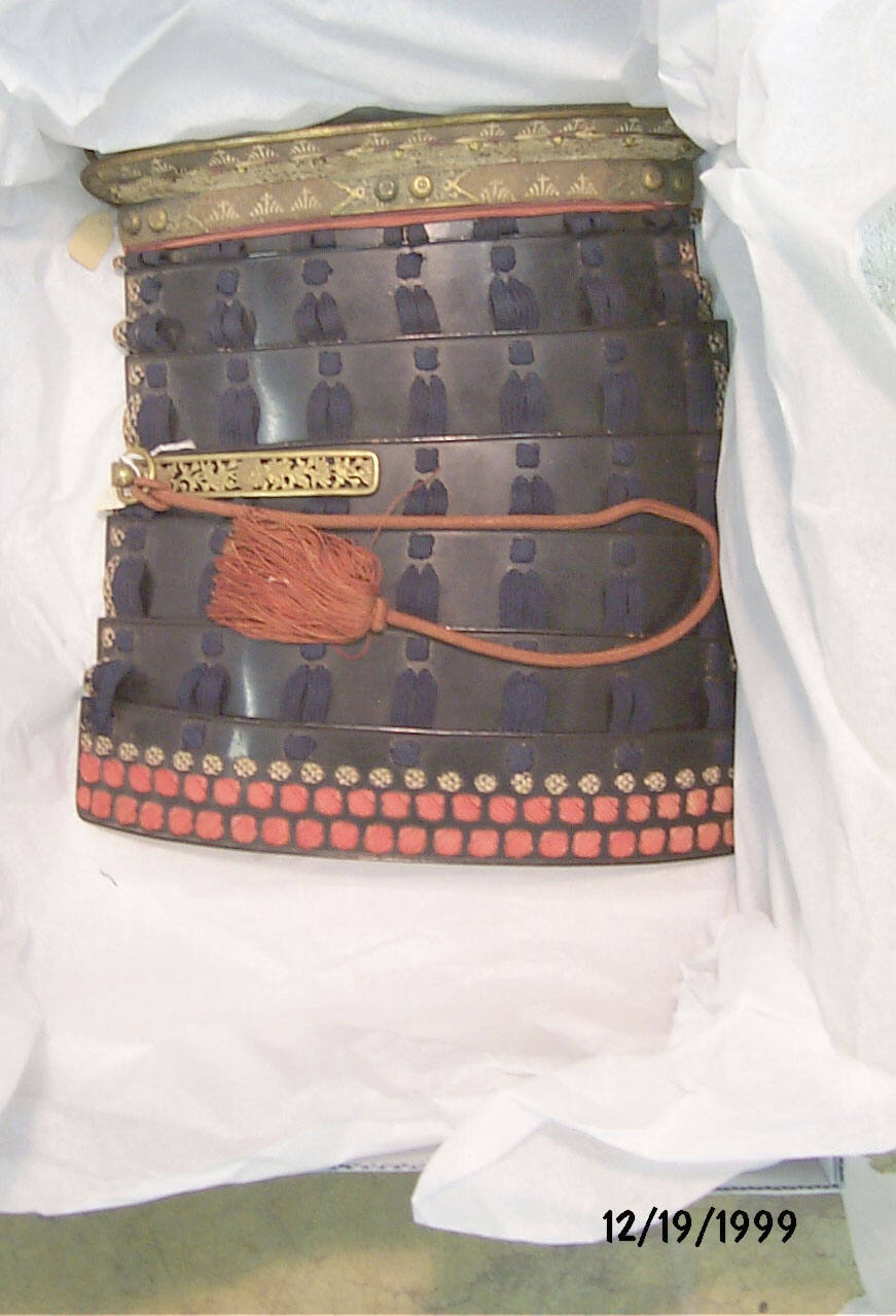 DescriptionTwo shoulder guards. b. shoulder guards; c. sleeves; d. corselet; e. taces; f. thigh guards; g. shin guards; h. foot covers; i. spearhead