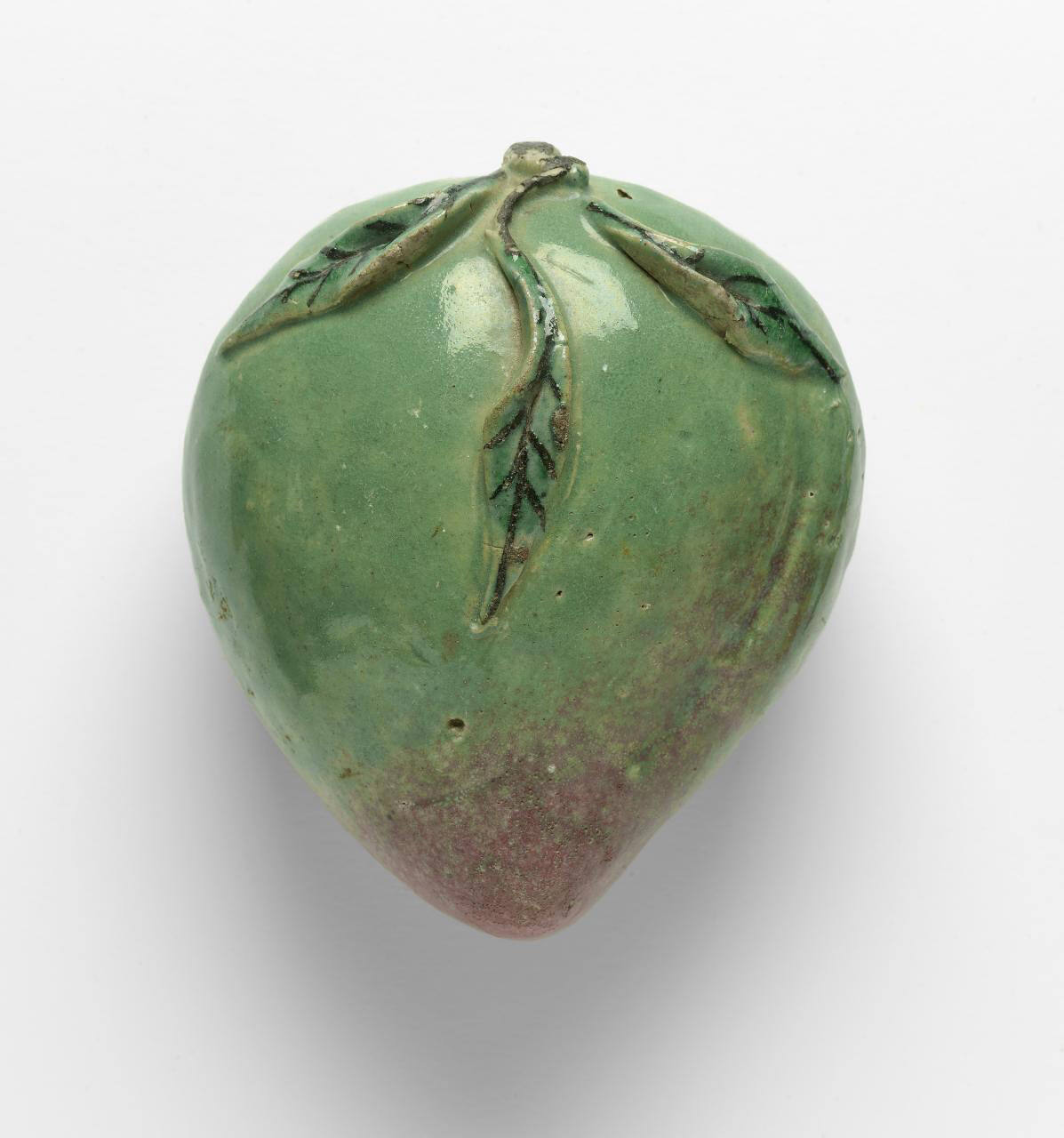 DescriptionThe group of fruit includes three peaches, one pomegranate, and two Buddha's hand citrus, all of which are polychrome. Each is hollow inside and sculpted in the fruit shapes.Gallery LabelTraditionally, the Chinese stove god is worshipped in the kitchen, where food is prepared for the entire family. The image of the god and his wife is hung above the stove, so they can observe everything that happens in the house that year. On a specific day before the lunar new year, the family burns the old print to send the god back to heaven, where he reports on the good and bad behaviors of the family. Because his words can determine the family fortune for the coming year, the Chinese often serve him with sweet cake so he will speak favorably of the family.