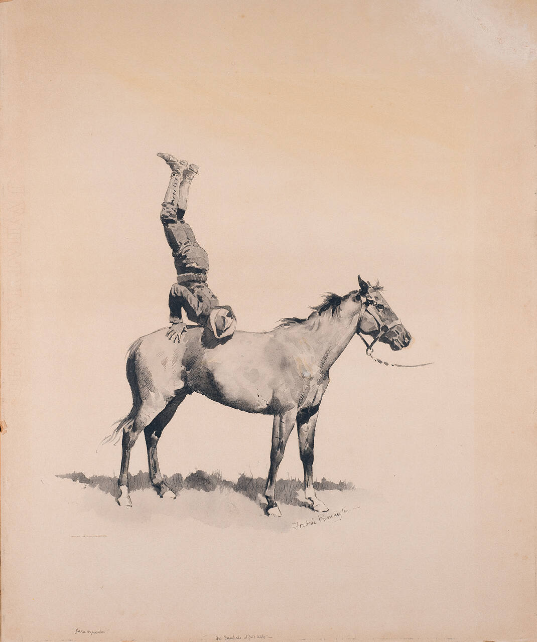 Signedin ink, near horse's front hooves: "Frederic Remington"