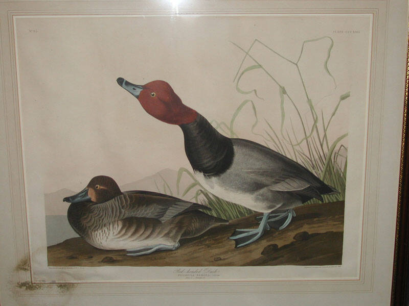 center, bottom margin: "Red-headed duck/ Fuligula Ferina, Steph./ 1 Male, 21 Female"