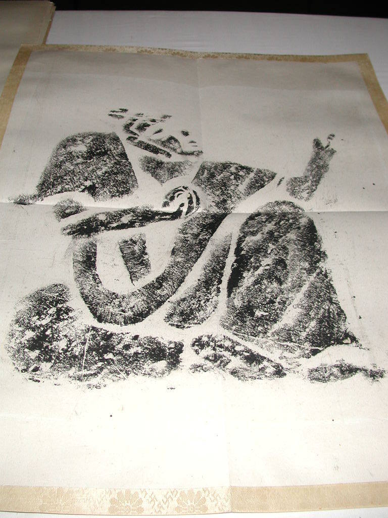 DescriptionMale figure holding a sphere. Box labeled "Kung Hsien". Rubbing taken from Kung Hsien (Gong Xian) caves.
