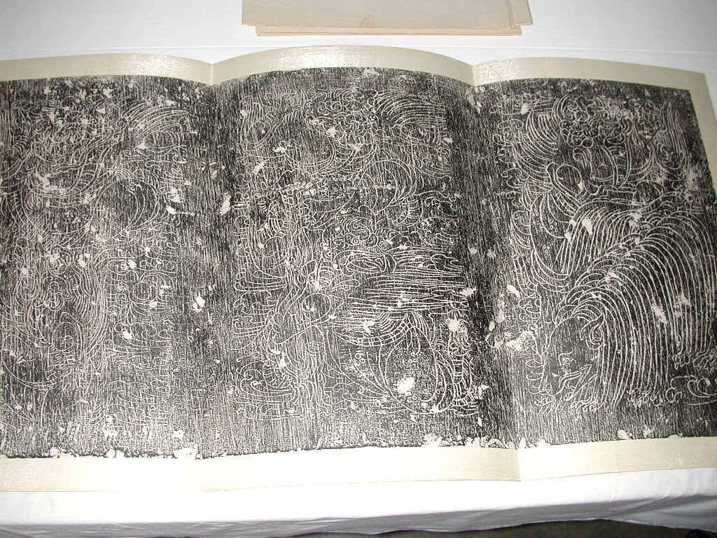 DescriptionDreamlike scene with swirling dragons and a water buffalo (?). Trifold.