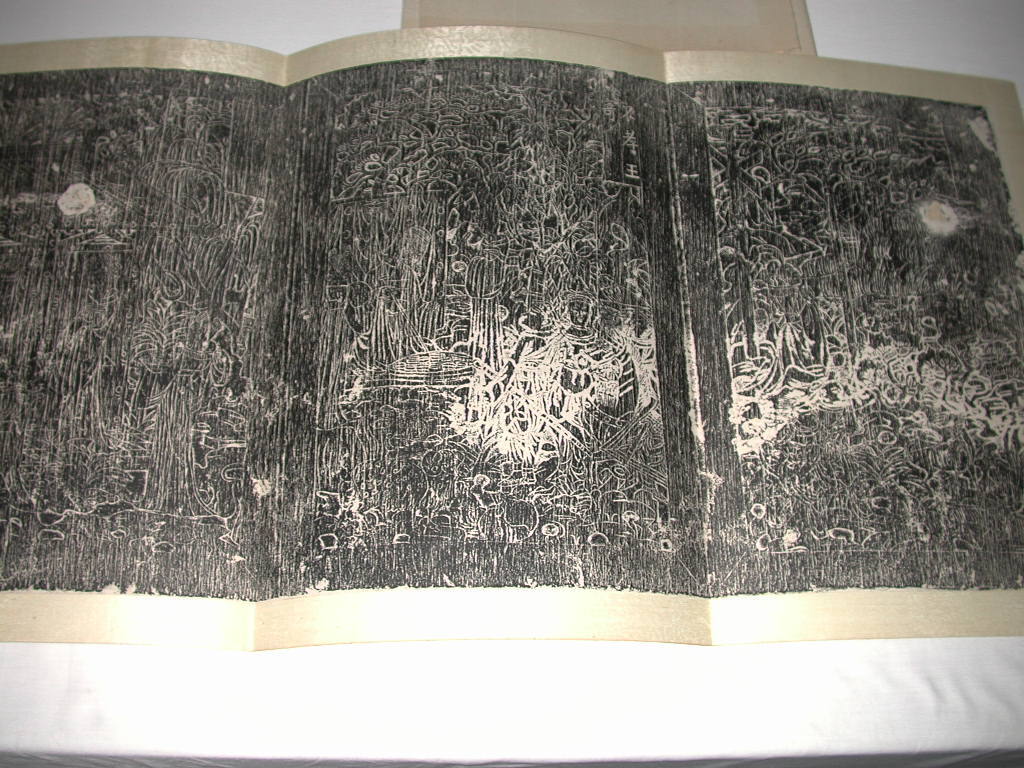 DescriptionFigures with forest/garden background (from inside a structure?).