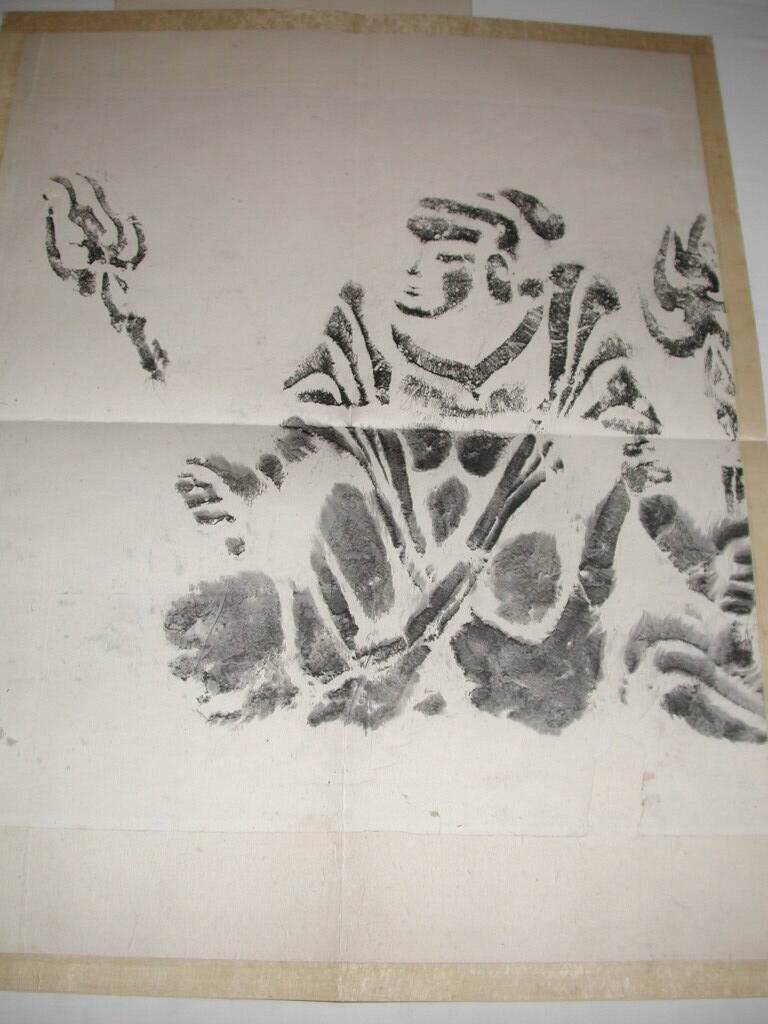 DescriptionSeated male figure with torches. "Kung Hsien". Rubbing taken from Kung Hsien (Gong Xian) caves.