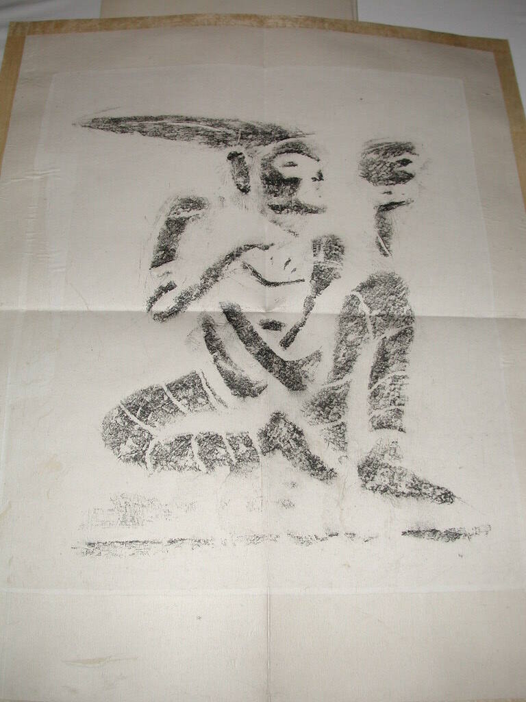 DescriptionMale figure holding sphere. 'Kung Hsien". Rubbing taken from Kung Hsien (Gong Xian) caves.