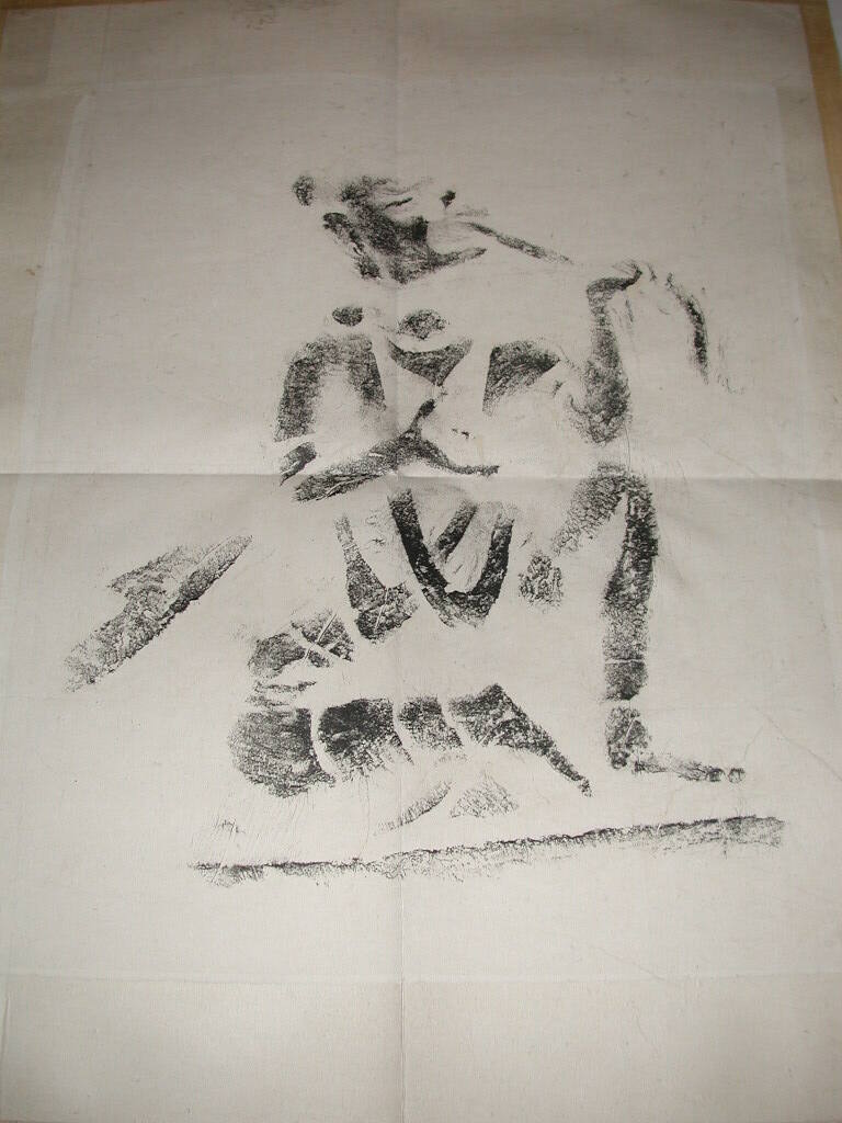 DescriptionMale figure with long object protruding from mouth. "Kung Hsien". Rubbing taken from Kung Hsien (Gong Xian) caves.